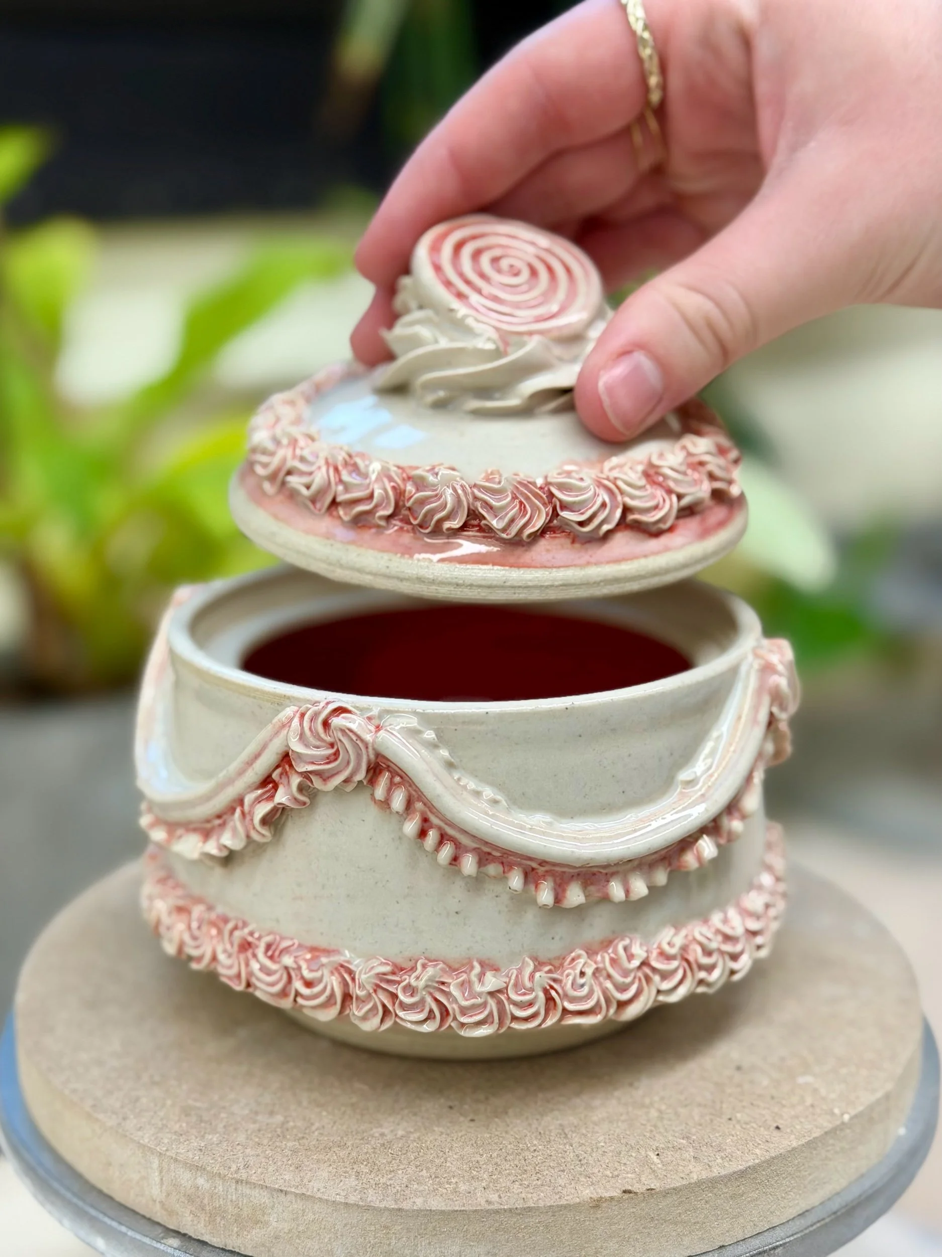 Store › Peppermint Cake Jar Peppermint Cake Jar $70.00 Carefully hand-crafted, small-batch ceramic lidded jar. Wheel-thrown, hand-decorated and glazed Carefully hand-crafted, small-batch ceramic lidded jar. Wheel-thrown, hand-decorated and glazed Add To Cart Added!