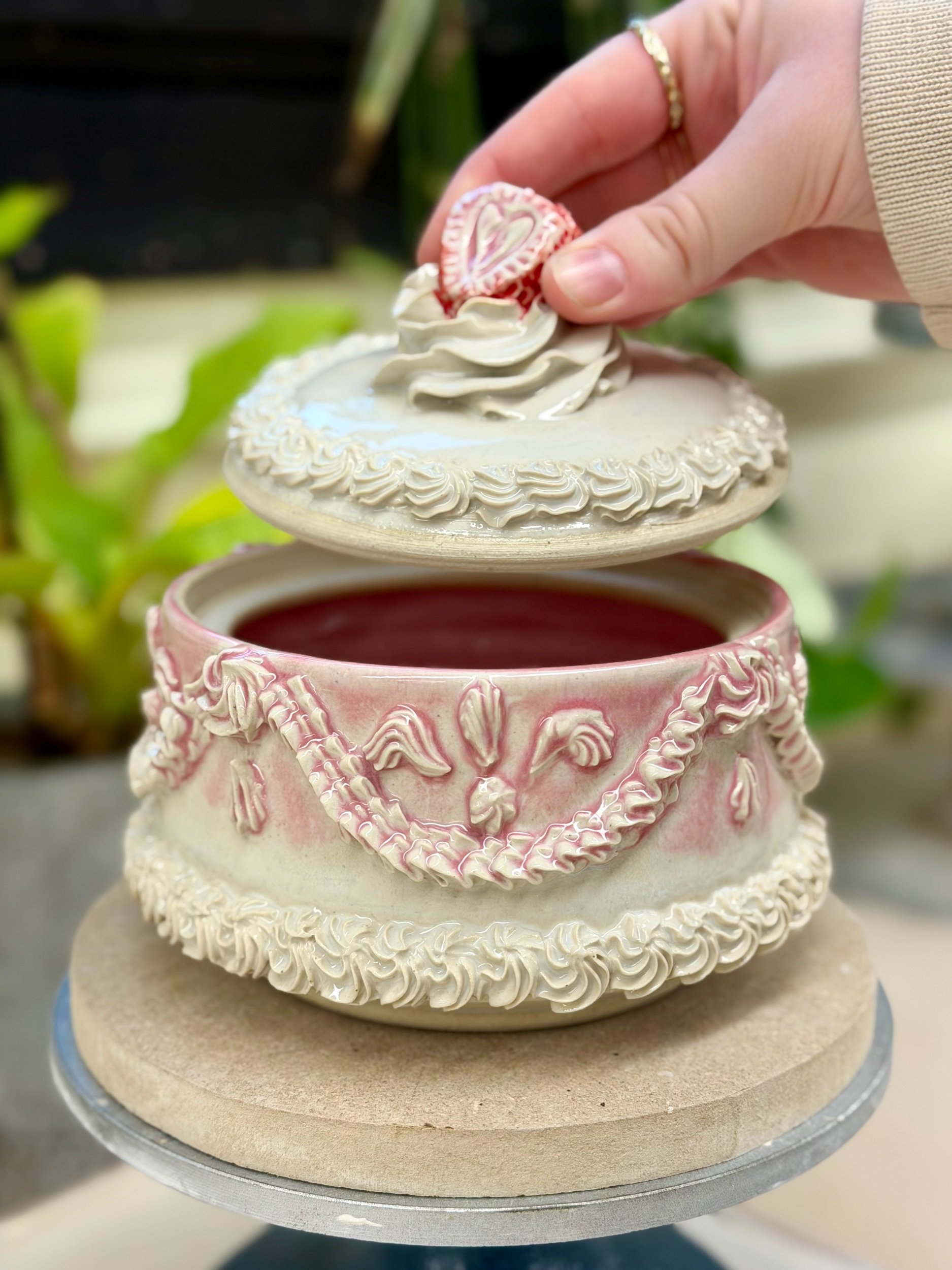 Store › Medium Strawberry Cake Jar Medium Strawberry Cake Jar $100.00 sold out Carefully hand-crafted, small-batch ceramic lidded jar. Wheel-thrown, hand-decorated and glazed Carefully hand-crafted, small-batch ceramic lidded jar. Wheel-thrown, hand-decorated and glazed Sold Out Added!